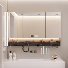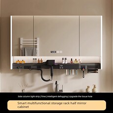 多功能置物收纳镜挂墙式卫生间浴室镜除雾智能镜柜带插座吹风机架