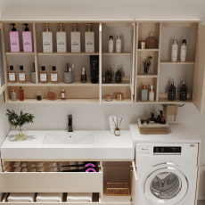 落地式浴室柜岩板台面智能镜柜组合阳台陶瓷洗衣盆带搓衣板洗漱台