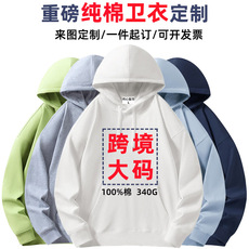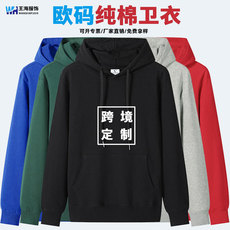 跨境纯棉连帽卫衣定制欧码宽松大版印logo广告衫刺绣企业工作服..