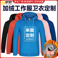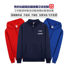 卫衣定制工作服印logo加绒加厚连帽立领拉链外套定做广告衫团体服