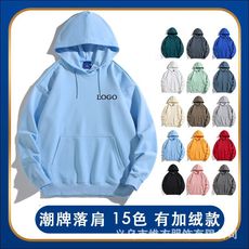 缘墅秋冬季加绒连帽卫衣定制工作服刺绣宽松广告衫落肩班服印logo