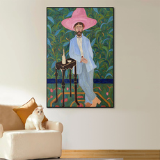 法式中古风戴粉帽子的男人现代客厅玄关装饰画背景墙壁画竖版挂画