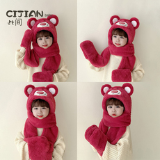 儿童帽子冬季男童女童新款围巾手套一体帽秋冬款可爱宝宝保暖围脖