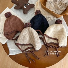 婴儿帽子秋冬季超萌针织护耳男女童冬款保暖宝宝防风可调节毛线帽