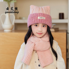 儿童帽子围巾一体毛绒帽可爱女孩秋冬款毛线帽防寒护耳洋气女童帽