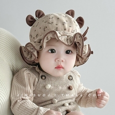 婴儿帽子秋冬款渔夫帽公主洋气小宝宝遮阳帽女宝蕾丝花边新款女童