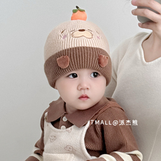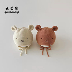 婴儿帽子秋冬款韩版超萌小熊幼儿男童地主帽春秋男孩女宝宝针织