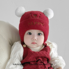 婴儿帽子秋冬款毛线帽宝宝满月喜庆红色帽子婴童过年吉祥针织帽冬