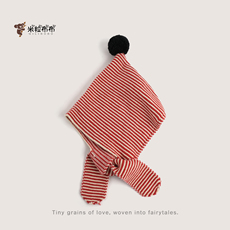 儿童帽子围巾一体帽秋冬款条纹针织护耳帽宝宝双层保暖防风毛线帽