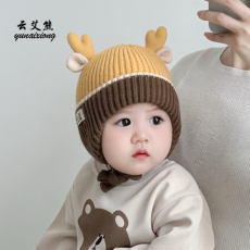 婴儿帽子秋冬款可爱小鹿造型针织护耳帽冬天男童女宝宝加厚毛线帽
