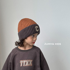 婴幼儿秋冬款针织帽子男女宝宝卷边瓜皮帽毛线帽小童字母嘟嘟帽潮