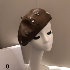 pu皮质美拉徳贝雷帽女生秋冬百搭显脸小南瓜帽复古八角画家帽子潮