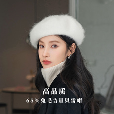 疯帽子 柔软安哥拉兔毛贝雷帽子女秋冬保暖纯色蓓蕾画家帽逛街