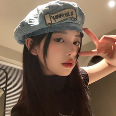 贴布牛仔贝雷帽女春夏季韩版百搭显脸小蓓蕾画家帽日系大头围帽子