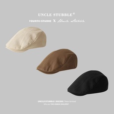 印计谷羽文艺复古前进帽秋冬季百搭短檐贝雷帽女款鸭舌帽子显脸小