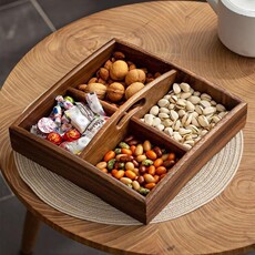 实木分格双层带盖点心盒子创意瓜子零食坚果盒客厅家用果盘干果盒