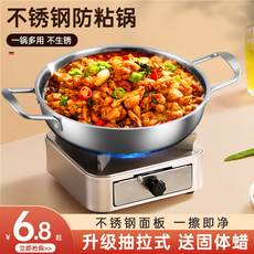 加厚不锈钢锅仔家用平底干锅锅具酒精炉小火锅商用不沾干锅炉304