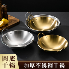 加厚圆底干锅锅具商用饭店酒店用锅仔卡磁炉专用火锅不锈钢酒吧鼎