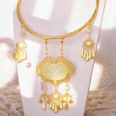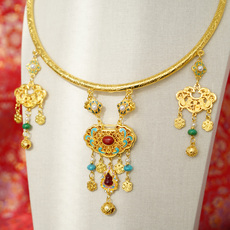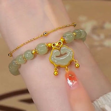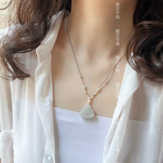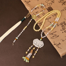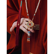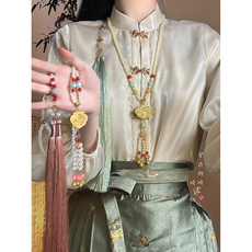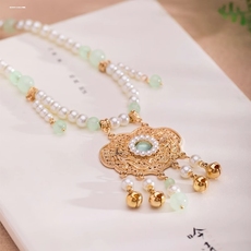 「吉祥如意」新中式国风年轻旗袍流苏汉服马面玉石平安锁项链璎珞