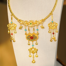 2024新中式汉服写真平安锁长璎珞流苏背云汉服配饰旗袍国古风项链