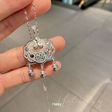 s999纯银平安锁项链女轻奢小众玉髓长命锁吊坠送闺蜜女友生日礼物