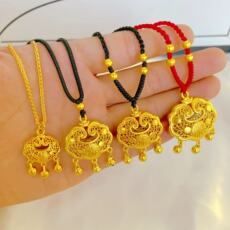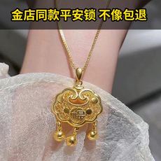 永保平安长命锁黑绳项链儿童宝宝铃铛沙金仿黄金百天照毛孩子项坠