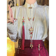 格格间原创【长春】晚明风平安锁旗袍古风项链女珍珠软璎珞多层