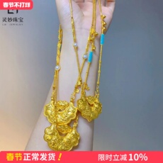 金店同款古法錾刻双鱼锦鲤锁包项链女沙金999平安金锁吊坠毛衣链