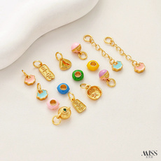景泰蓝青花四叶花福袋平安锁双鱼铜钱18K保色吊坠diy手链项链配件