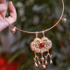 「长相守」红色平安锁璎珞背云流苏项链新中式古风马面裙汉服配饰