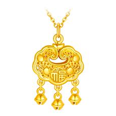 周大生黄金宝宝长命锁吊坠男女足金平安金锁挂坠满月周岁生日礼物