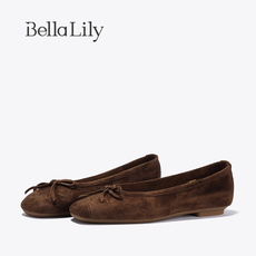 千百度芭蕾舞鞋舒适春秋休闲蝴蝶结单鞋女羊皮晚晚鞋平底鞋气质