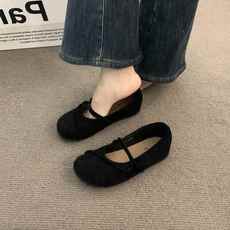 蝴蝶结平底芭蕾舞鞋女2025春秋新款四季鞋方头浅口软底奶奶鞋单鞋