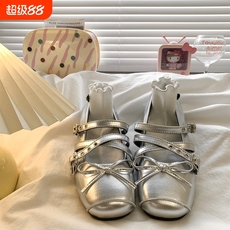 法式蝴蝶结圆头芭蕾舞鞋仙女鞋平底温柔晚晚鞋夏季新款女士小单鞋