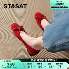 星期六羊皮单鞋女2025新款早秋红色婚鞋平底鞋浅口芭蕾舞鞋豆豆鞋