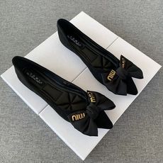 2025春秋季新款淑女甜美蝴蝶结尖头浅口平底日系女鞋通勤鞋单鞋女
