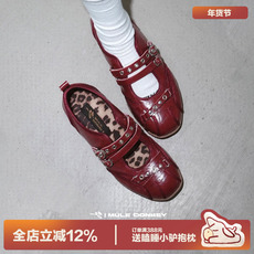 reemoor2025秋季新款法式复古方头铆钉玛丽珍鞋女平底单鞋女鞋