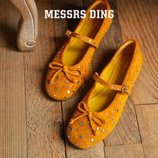 DENTUATUA wuli芭蕾鞋~炒鸡美丽! 25ss 铆钉蝴蝶结平底单鞋女