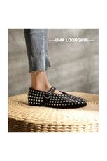 欧美潮流铆钉系带低帮男女板鞋街拍银色钉时尚bling单鞋平底乐福