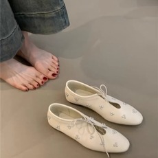 2025新款法式蝴蝶结铆钉浅口单鞋女温柔舒适一脚蹬芭蕾平底豆豆鞋