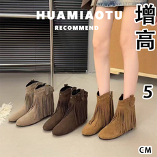 洋气巨好看的流苏内增高小短靴女2025早秋新款复古平底显瘦裸靴子
