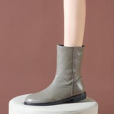 直筒时装短靴女2025秋冬新款软皮平底方头宽松显瘦大筒围中筒靴子