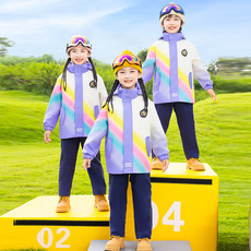 紫色小学生校服班服冲锋衣三件套幼儿园园服秋冬款套装内胆可拆卸