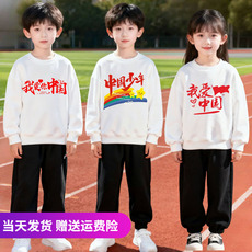 中国风白衣服黑裤子儿童卫衣套装春秋款幼儿园中小学生运动会班服