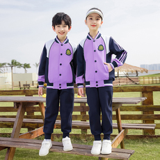 紫色春秋款小学生校服班服运动套装幼儿园园服夏季短袖三件套新款