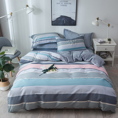 雨兰简约100全棉斜纹AB版床上用品小清新床单被套单人双人四件套