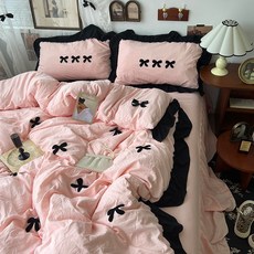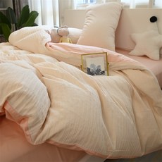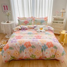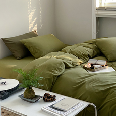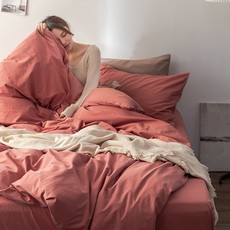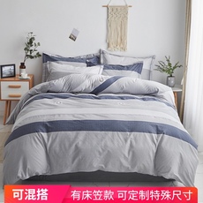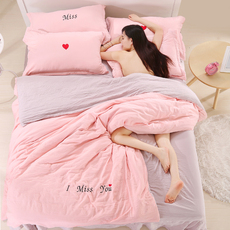 日式网红纯色水洗棉混搭四u件套学生宿舍三件被套床单双人床上用