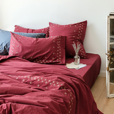 胭脂红 女神边纯棉n四件套嵌边工艺全棉纯色床上用品双人被套1.8