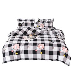 北欧风简约三件套单人双人奶牛被套黑I色波点床单U床上全棉四件套