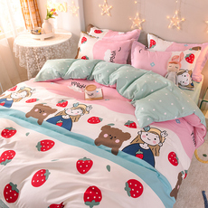 四件套全棉新款卡通床上用品儿童被套床单双人学生宿舍三件套